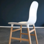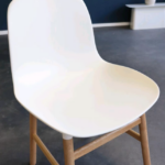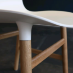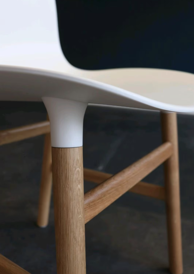 Das Design, der Sitzkomfort und die Zusammensetzung der Materialien machen dem Stuhl von Simon Legald besonders. Dank des einzigartigen Stecksystems ist die Sitzschale stabil mit dem Gestell verbunden.